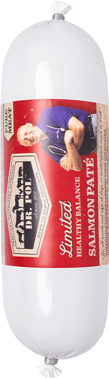 Dr. Pol Paté worsten zijn een eiwitrijke maaltijdverrijking, snack of traktatie voor jouw hond. De worsten zijn graan- en glutenvrij en zijn vrij van kunstmatige toevoegingen. Verkrijgbaar in de smaken kip, lam en zalm. De Dr. Pol worsten zijn geschikt voor alle rassen en leeftijden.