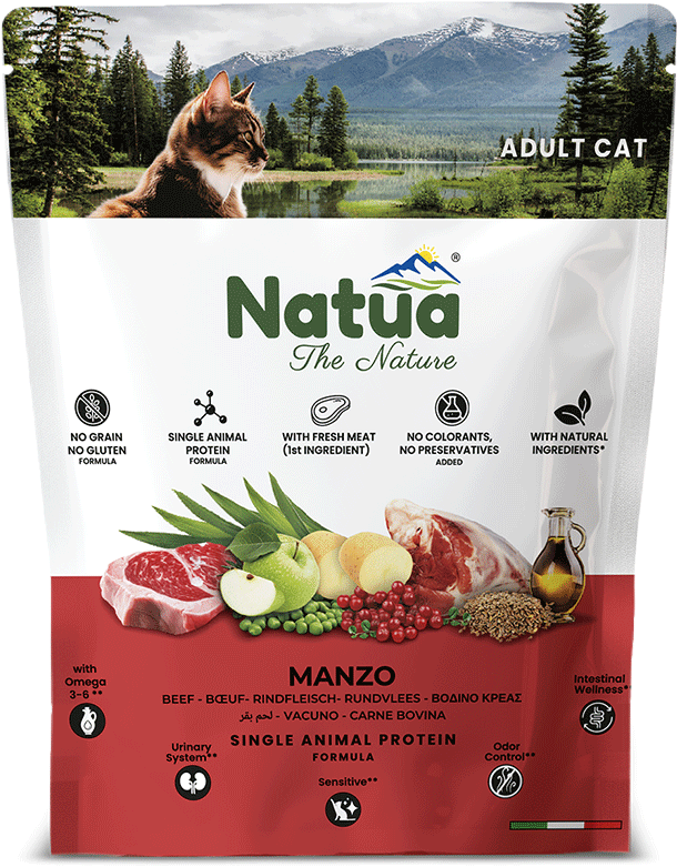 Natua Dry sluit perfect aan bij de natuurlijke behoeften van een kat. De brokjes zijn gemaakt van zorgvuldig geselecteerde grondstoffen en hebben een monoproteïne-formule die het welzijn van elke kat ondersteunt. Vers vlees of verse vis is altijd het eerste ingrediënt, wat zorgt voor een optimale voedingswaarde en uitstekende verteerbaarheid.